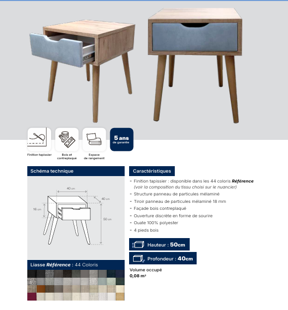 Chevet Nautre Déco – 44 coloris façade tiroir