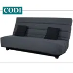 Banquette Clic-clac couchage 130×190 – matelas mousse 23kg de 11 cm – coutil intissé – sommier métallique 9 lattes multiplis de 60 – Housse et coussins tissu 80% coton 20% polyester – Ouate 300gr/m2 – Socle panneaux de particules tapissé – 2 coussins – socle et coussins uniquement en tissu EDGAR 850 Anthracite