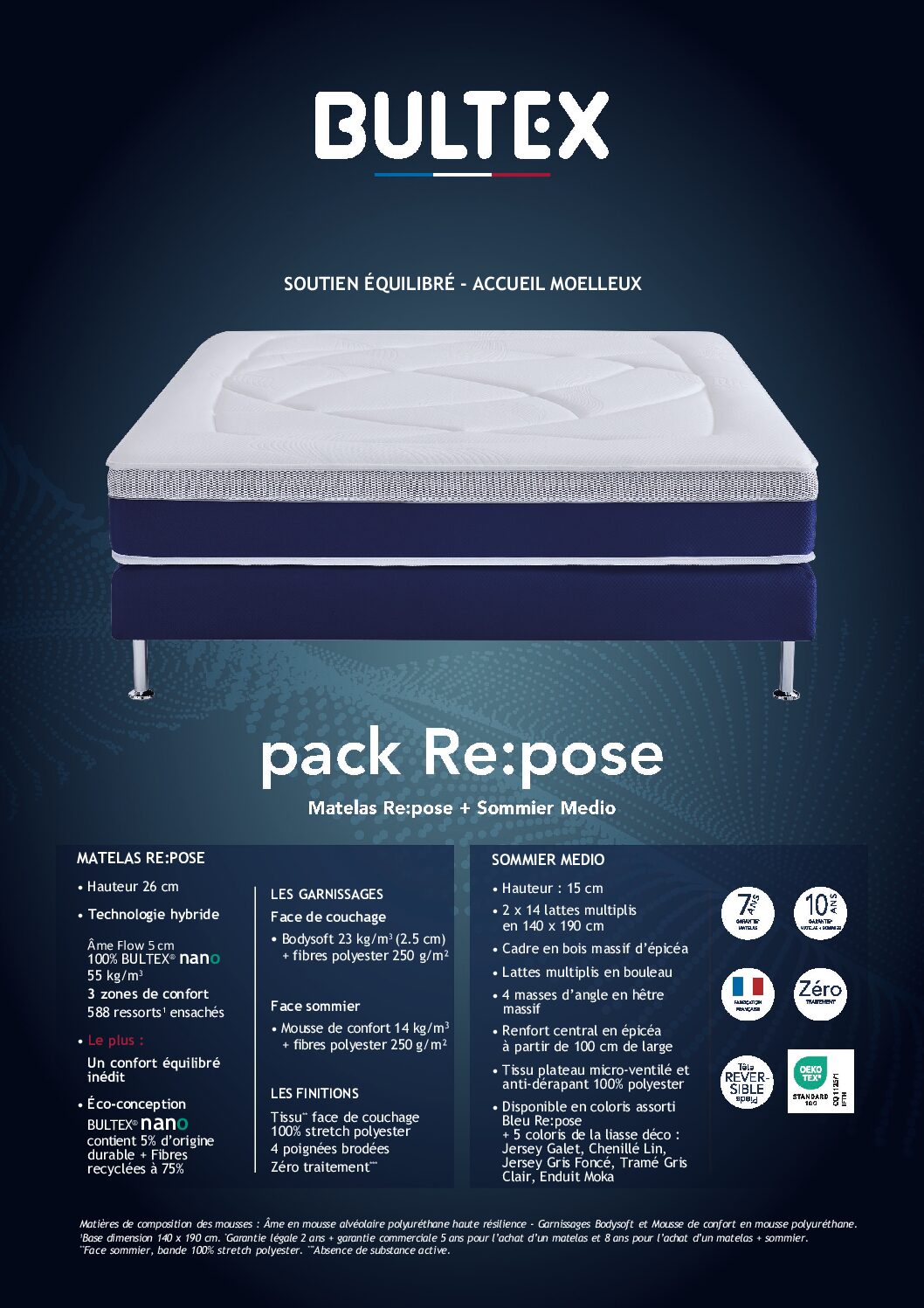 | Âme | Âme Flow 5 cm Bultex® nano 55 kg/m3, 588 ressorts ensachés |