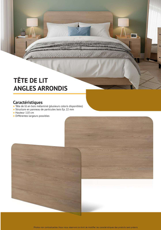 - Tête de lit en bois mélaminé (plusieurs coloris disponibles)